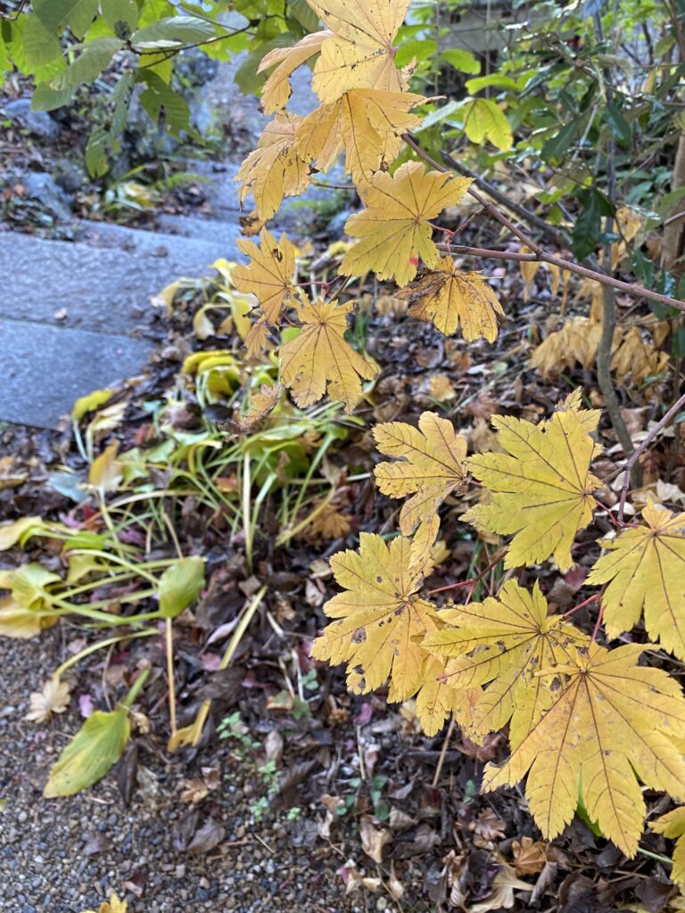▲ 葉脈が美しいハウチワカエデの黄葉