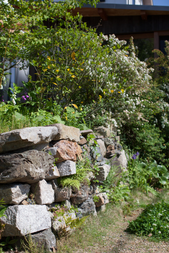 山の中の住宅地に住んでいるので、自然は身近にあります。散歩すると空気が良く、ビューポイントもいくつかあります。でもなぜあえて庭が良いのか?それは、出かけなくてもそこにあるから(笑)。これは私の体験レベルの話になりますが、植物が近いと「自然に慣れる」んだと思います。時々ではなく、いつもなんとなくそこにある存在。葉脈の形や小さな花まで目に入ってくる近さです。紅葉、落ち葉、新緑、一年を通して、季節の移ろいを五感すべてで感じて、日々暮らしています。 石垣の隙間にはトカゲが住んでいて、前を通るとカサカサっと音がしたり、カエルが窓に張り付いてることもあります。慣れていないとびっくりするようなことかもしれませんが、今ではすっかり「同じ家に住んでる者同士」です。人間以外の何かと(上手く住み分けて)暮らしている感覚というのも、庭ならではかもしれません。