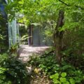 京都の街中で、旗状敷地の前庭のリノベーションでした。前庭部分は細長く、奥にレンガタイルの落ちついた雰囲気のマンションがあります。まさに「鰻の寝床」ですね。