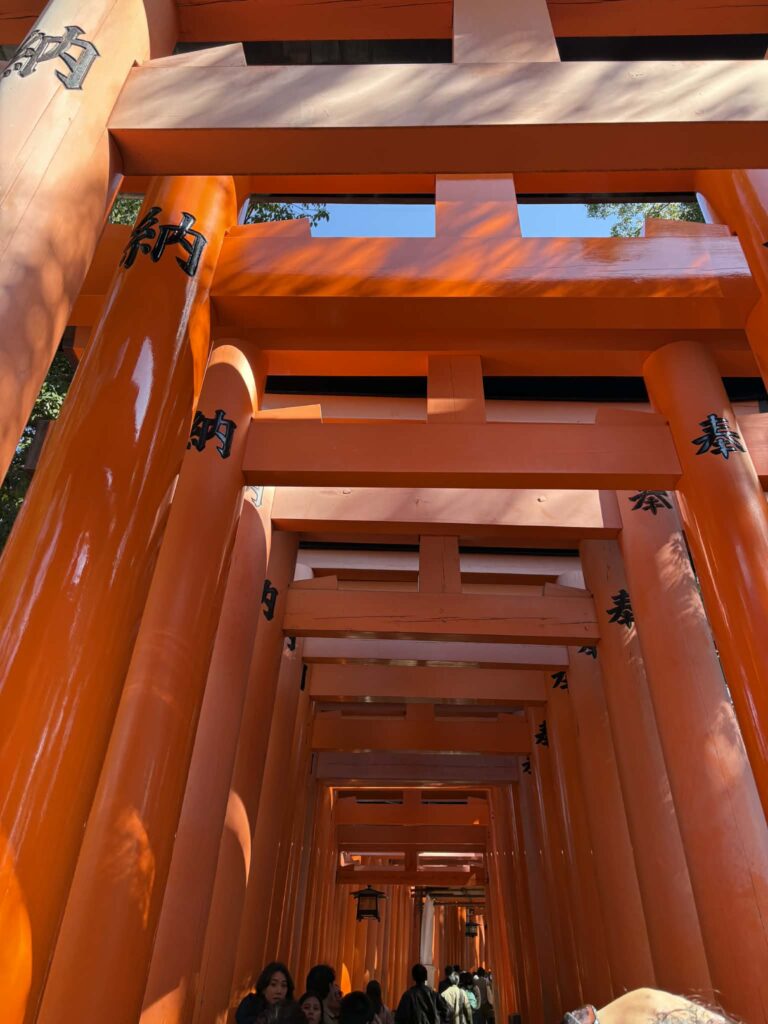 お次は地下鉄東西線と京阪電車で伏見稲荷大社へ。全国にある約三万社の稲荷神社の総本宮です。時間的にお昼頃だったので観光客が多いのは覚悟の上でしたが、天気が良く観光日和なこともあってか想像以上。千本鳥居の上の方まで上がっていくと、次第に人も減り静寂の瞬間もありましたが、千本鳥居をしっかり楽しみたい方は、ぜひ早朝など人の少ない時間帯に行ってください。