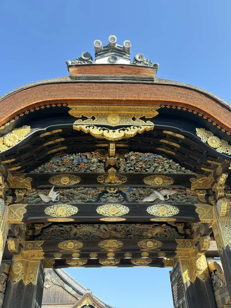 まずは二条城。豪華絢爛、重厚感!友人が色々と説明してくれながら観る襖絵は面白いです。外国から来た虎の毛皮からインスパイアされ?想像で描かれた虎、珍しい植物として描かれたちょっと変な蘇鉄。その時代、今の様に情報が豊富でなかった頃に想いを馳せることができる。個人的には、うぐいす貼りの床は経年劣化によって鳴っている、という事が最近の研究で分かっているというのが印象的でした。忍者対策ではなかった…。